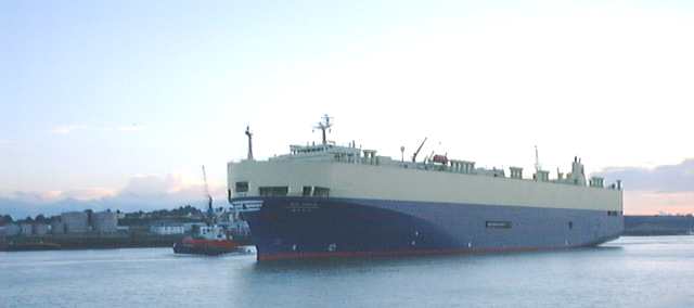 Departure from Tilbury was delayed slightly as the enormous car carrier Hyundai No. 203 was leaving her berth, assisted by the tugs Cobham and Sun Sussex. |