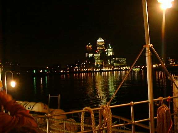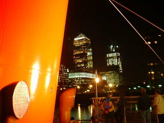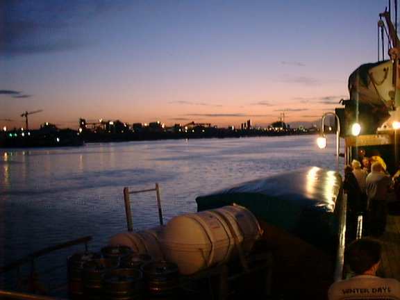| We steamed westward into an unusual sunset, finally experiencing the "Twinkling Thames" in its full glory. | ![]() |