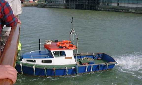 Here she is approaching Whitstable Harbour, her next port of call. |