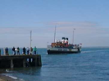By now, a stiff southerly breeze had picked up and there was a lively sea running under Southend Pier. Combined with the strong wind on to the pier face, this meant there was an unacceptable risk of damage if she had gone alongside. Captain Gellatly steamed in a circle to allow an apology and explanation to be made to intending passengers waiting on the Pier. Now we steamed south, across the Thames Estuary to mouth of the River Medway at Sheerness.