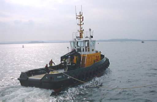 Just off the cross-Channel ferry berth we met up with the Poole Harbour Commissioner's tug Herbert Ballam. She was named after a former Commissioner. After she had assisted us round, we returned to the open sea along the more southerly Main Channel, closer to Brownsea Island.