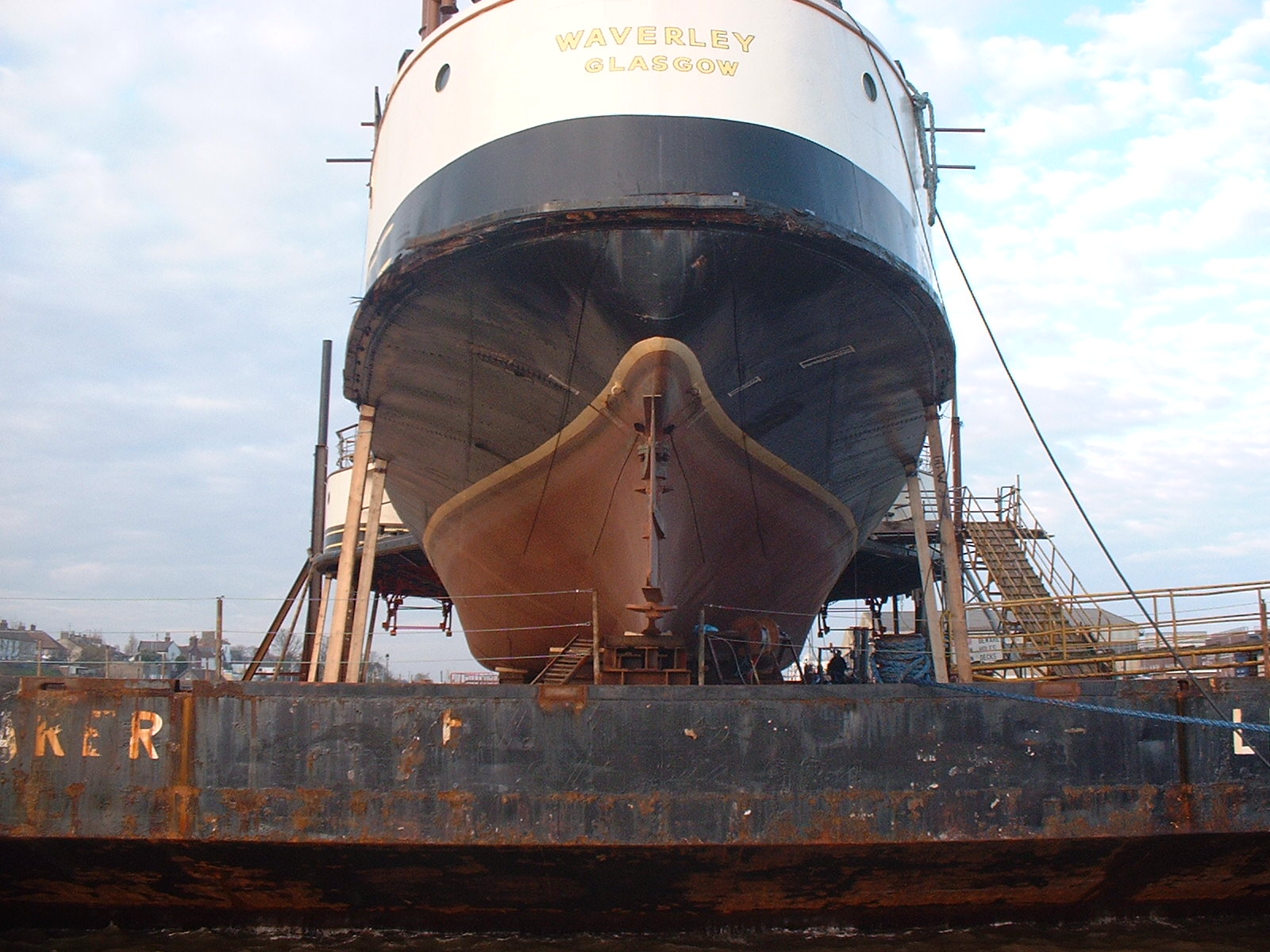 The time lapse photography of Waverley's lift out of the water did not happen dut to the operation starting in low light and being completed in darkness. We do hope to have the re-floating operation captured though.