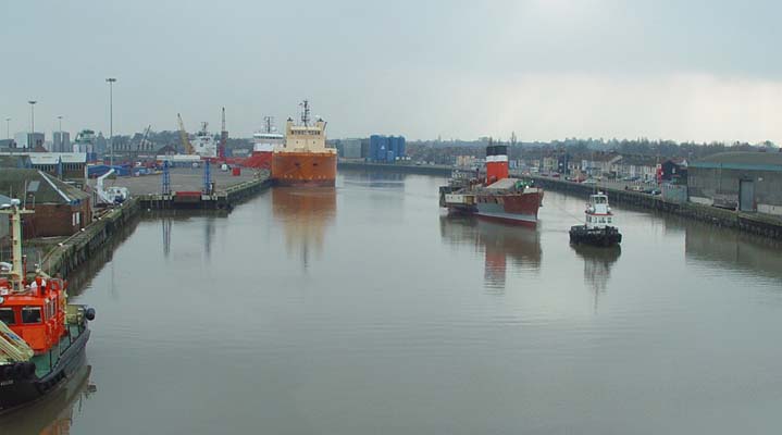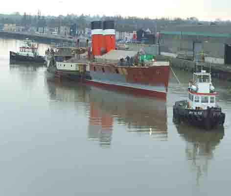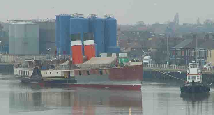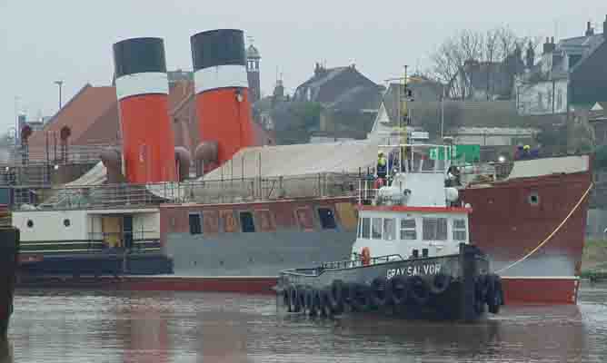 Following re-floating, Paddle Steamer Waverley was slowly towed upstream by two tugs.