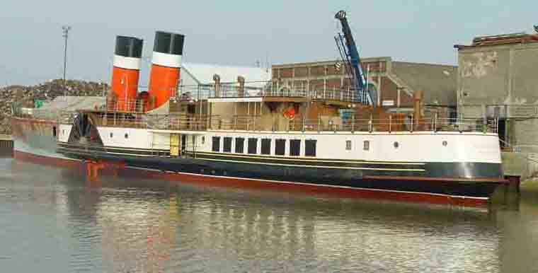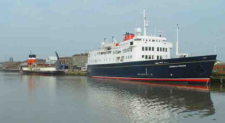 Waverley in company with another former CalMac vessel, Hebridean Princess (ex-Columba), also receiving attention from George Prior Engineering