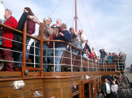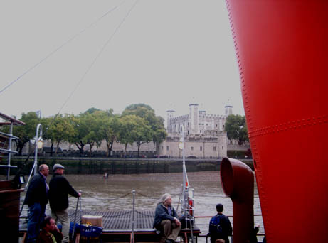 Just as the paddler was steaming away, a medical emergency occurred and Captain Colledge was obliged to turn his ship around and re-enter the harbour. The Kent Ambulance Service were quickly in attendance and the casualty landed. Soon the ship was under way once more, delayed by some 30 minutes. No time was made up by the time we left Southend but the old lady arrived at Tower Pier at the expected time despite punching the tide all the way.