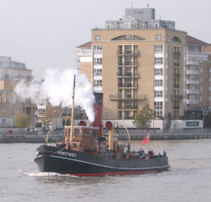 The preserved steam tug Portwey salutes the paddler