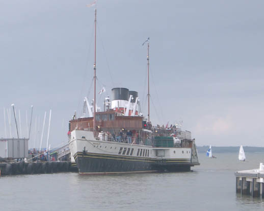 Wednesday took the steamer from Tilbury and Southend to Clacton for a River Blackwater cruise with coaches back to the ports of departure. Waverley had been due to sail on to Harwich for her Wednesday schedule but the weather would not permit this. Instead she anchored off in the hope conditions would improve. In the end, however, she had to retire to more sheltered waters instead. This meant that passengers from Ipswich and Harwich were taken to Southend by coach to join the paddler. A short cruise to Saltpan Reach in the River Medway was given before a second call at Southend to pick up passengers from Clacton. Finally, everyone was taken upstream to London.