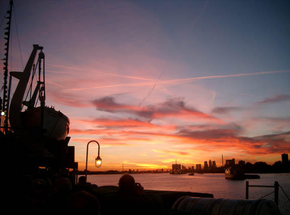 An upriver evening cruise was offered from Southend and Tilbury to the Upper Pool. After dropping off her day cruise passengers in London, the paddler completed her day's sail at Tilbury with the Southend contingent completing their journey by coach.